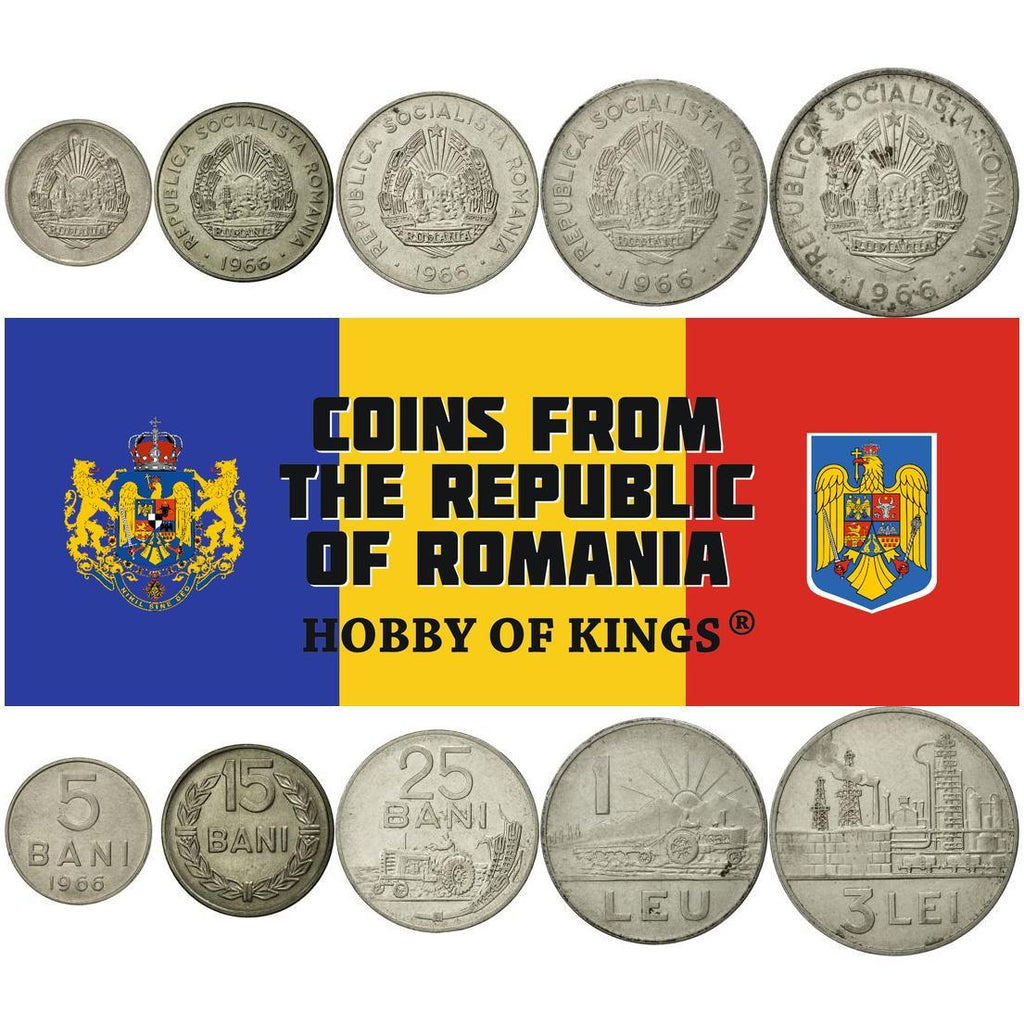 رومانيا | مجموعة 5 عملات | 5 15 25 باني 1 3 ليو | 1966 - 1990