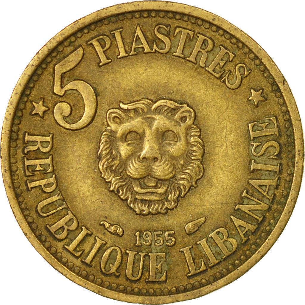5 Qirush-mønt fra Libanon (Republikken Libanon, ٱلْجُمْهُورِيَّةُ ٱللُّبْنَانِيَّةُ). Mønten blev cirkuleret i 1955 - 1961 og vælges tilfældigt. Forskellige grader fra God til Meget fin. Et foto er kun til reklameformål. Mønten kan have ridser, snavs eller skader fra oxidation.