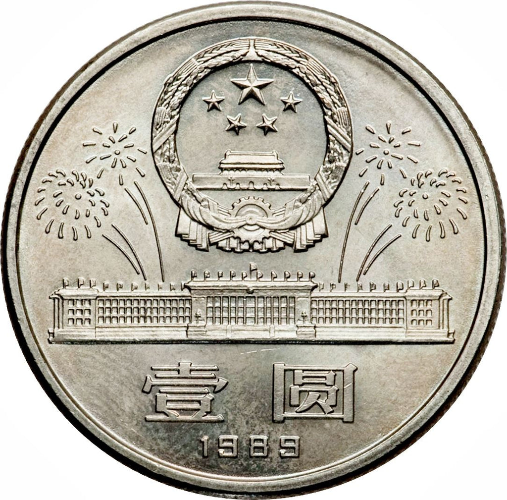1 Yuan coin from China (People's Republic of China, 中华人民共和国). The coin was circulated in 1989 and will be picked randomly. Various grades from Good to Very fine. A photo is for advertising purposes only. The coin may have scratches, dirt, or damage from oxidation.