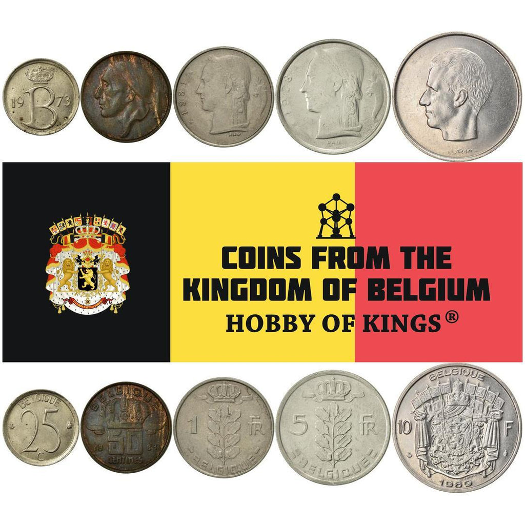 5 coin set made in these countries: Belgium (Kingdom of Belgium), Königreich Belgien.