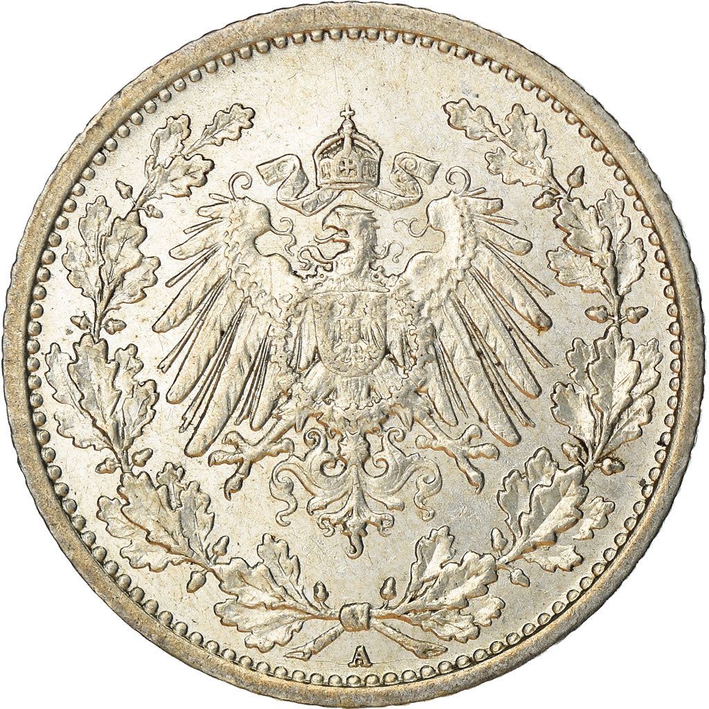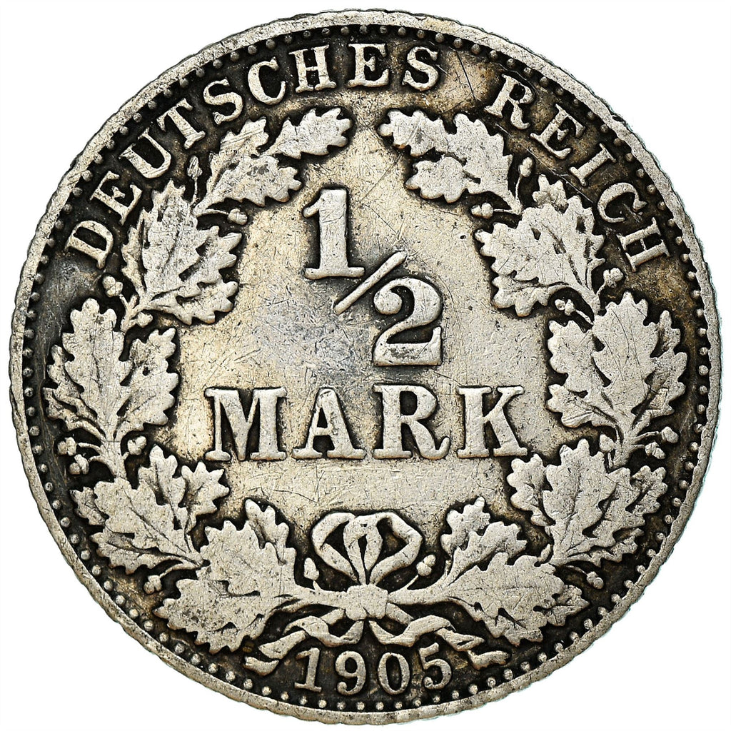 ½ Mark coin from Germany (German Empire, Deutsches Reich). The coin was circulated in 1905 - 1919 and will be picked randomly. Various grades from Good to Very fine. A photo is for advertising purposes only. The coin may have scratches, dirt, or damage from oxidation.