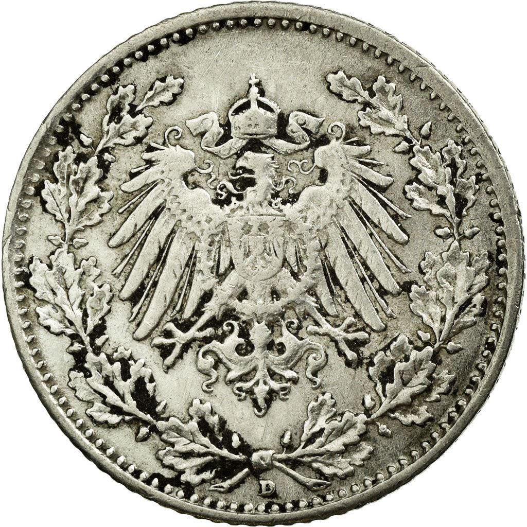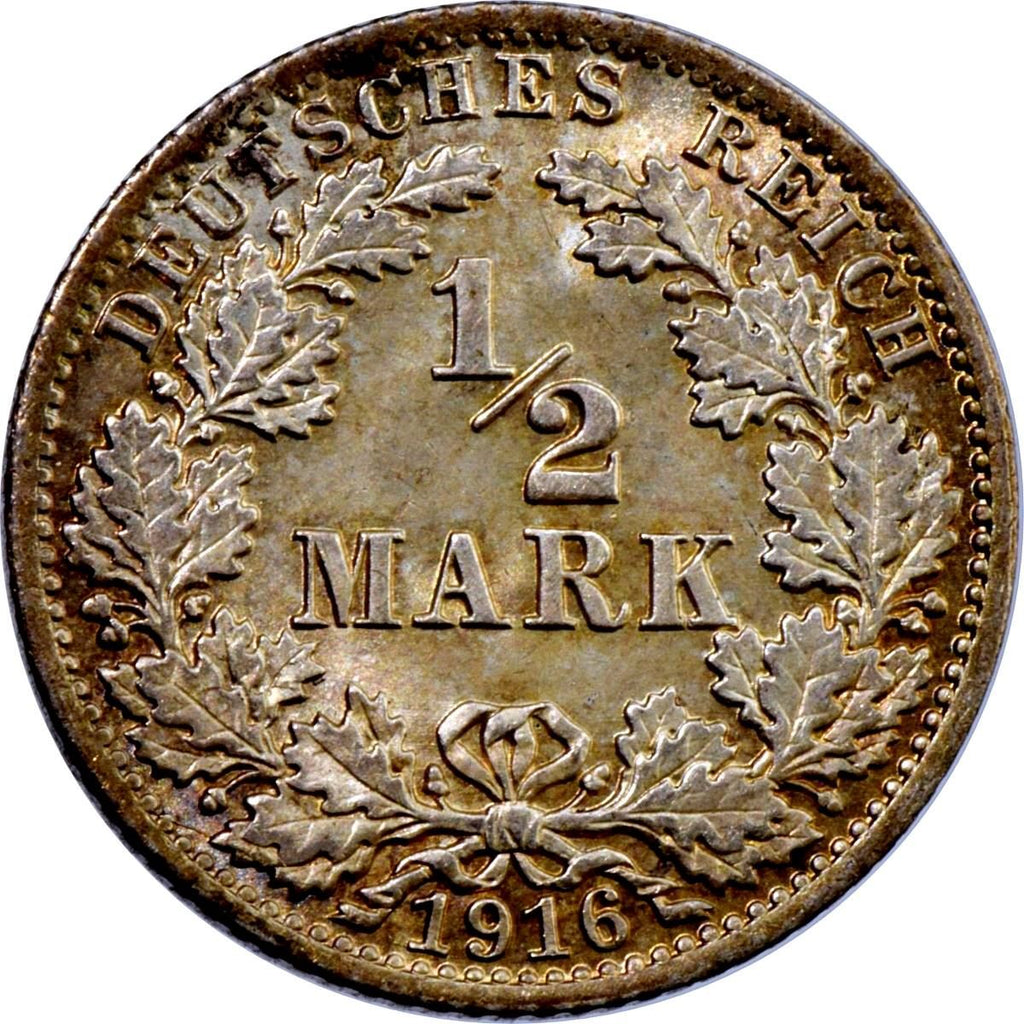 Reverse lettering: DEUTSCHES REICH 1/2 MARK 1916