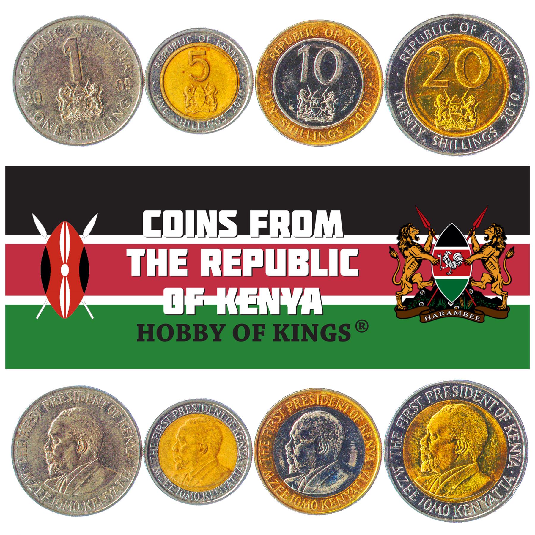 Set 4 Coins Kenya 1 5 10 20 Shillings 2005 - 2010Set 4 Coins Kenya 1 5 10 20 Shillings 2005 - 2010