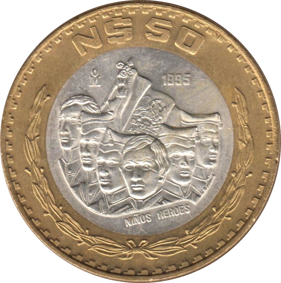 Moneda de 50 Nuevos Pesos de México (Estados Unidos Mexicanos, Estados Unidos Mexicanos). La moneda se circuló entre 1993 y 1995 y será seleccionada al azar. Varias calidades desde Bueno hasta Muy fino. La foto es solo para fines publicitarios. La moneda puede tener rayones, suciedad o daños por oxidación.
