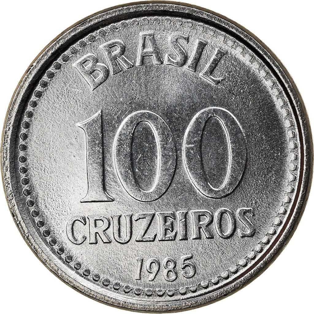 Pièce de 100 Cruzeiros du Brésil (République fédérative du Brésil, República Federativa do Brasil). La pièce a circulé de 1985 à 1986 et sera choisie au hasard. Divers états de conservation allant de Bon à Très beau. Une photo est fournie à des fins publicitaires uniquement. La pièce peut présenter des rayures, de la saleté ou des dommages dus à l'oxydation.