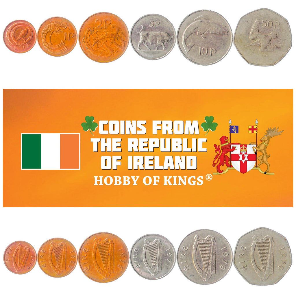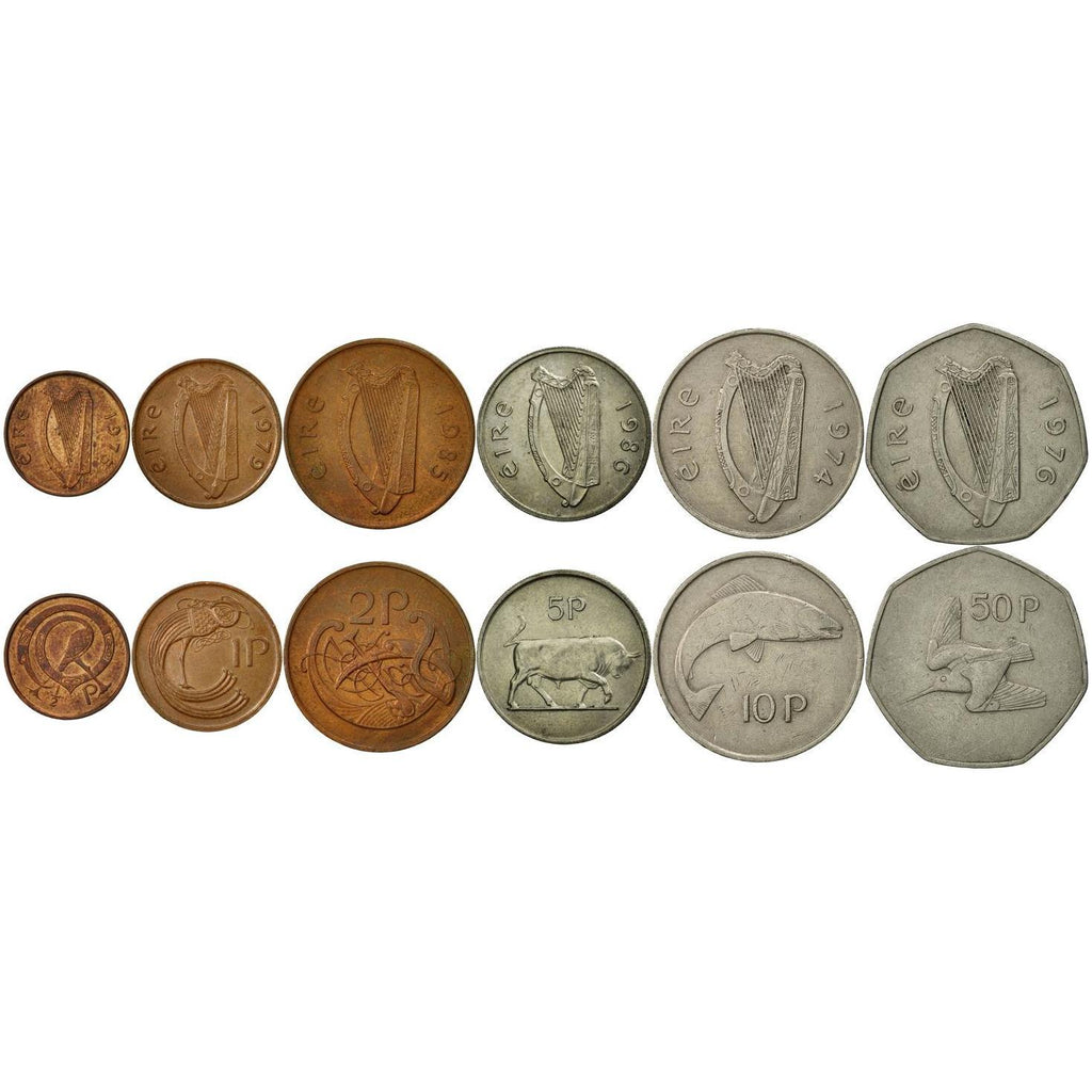סט של 6 מטבעות שיוצרו במדינות הבאות: אירלנד (Éire), Airlann.