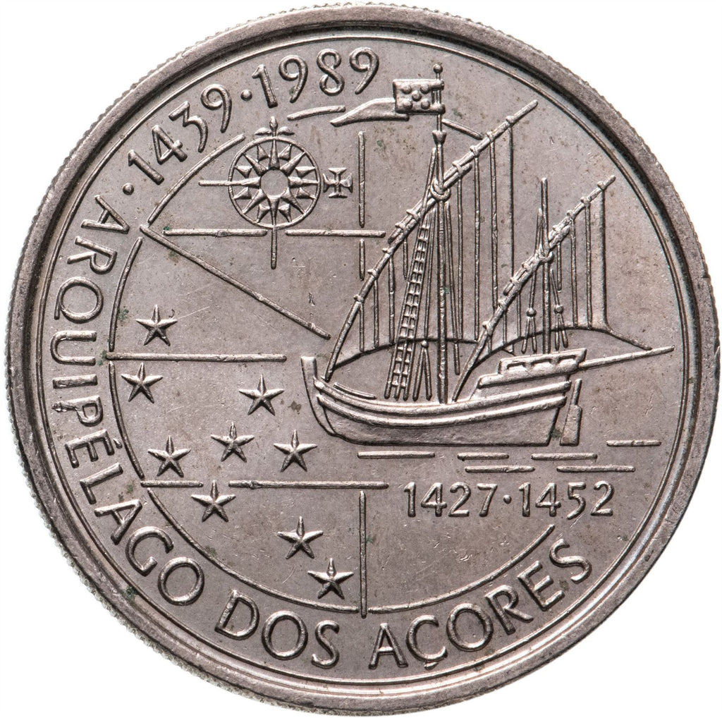 מטבע 100 אסקודוס מפורטוגל (הרפובליקה הפורטוגזית, República Portuguesa). המטבע הונפק בשנת 1989 וייבחר באקראי. דרגות שונות מ"טוב" ועד "טוב מאוד". התמונה למטרות פרסום בלבד. המטבע עלול להכיל שריטות, לכלוך או נזק מחמצון.