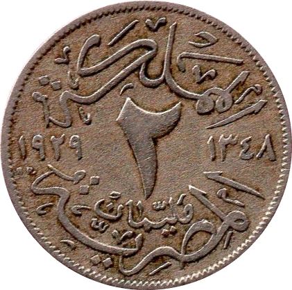 Traduzione del rovescio: Regno 1929 2 1348 B P. milliemes d'Egitto