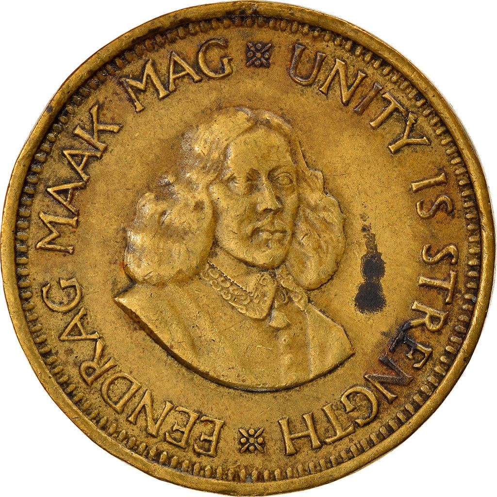 表面: ヤン・ファン・リーベック(1619-1677)の肖像、オランダ植民地管理者でケープタウンの創設者。アフリカーンス語と英語のモットー: "団結による力"