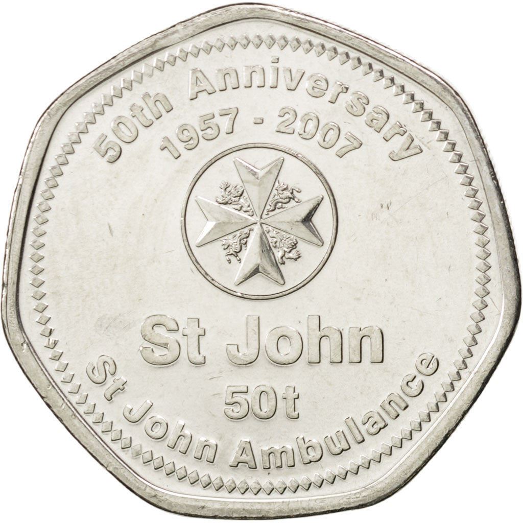 Kraštas: 50-ųjų Šv. Jono greitosios pagalbos metinių proga Priekis Papua Naujosios Gvinėjos herbas: rojų paukštis virš tradicinio ieties ir kundu būgno. Užrašas: lotyniškais rašmenimis: PAPUA NEW GUINEA 2007 Atgal Greitosios pagalbos korpuso logotipas Užrašas: lotyniškais rašmenimis: 50-ųjų metinių 1957 - 2007 St John 50t St John Ambulance Kraštas Kintantis lygus ir briaunuotas