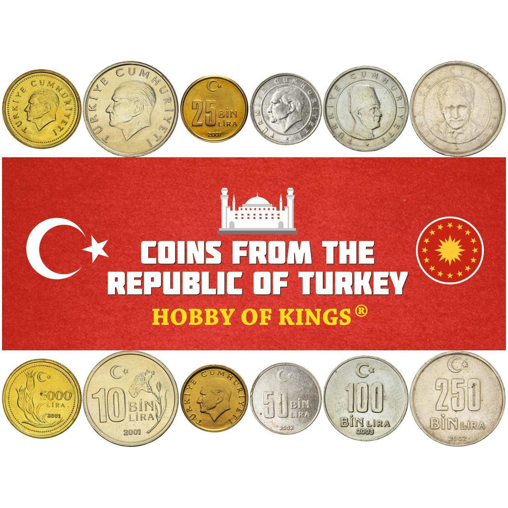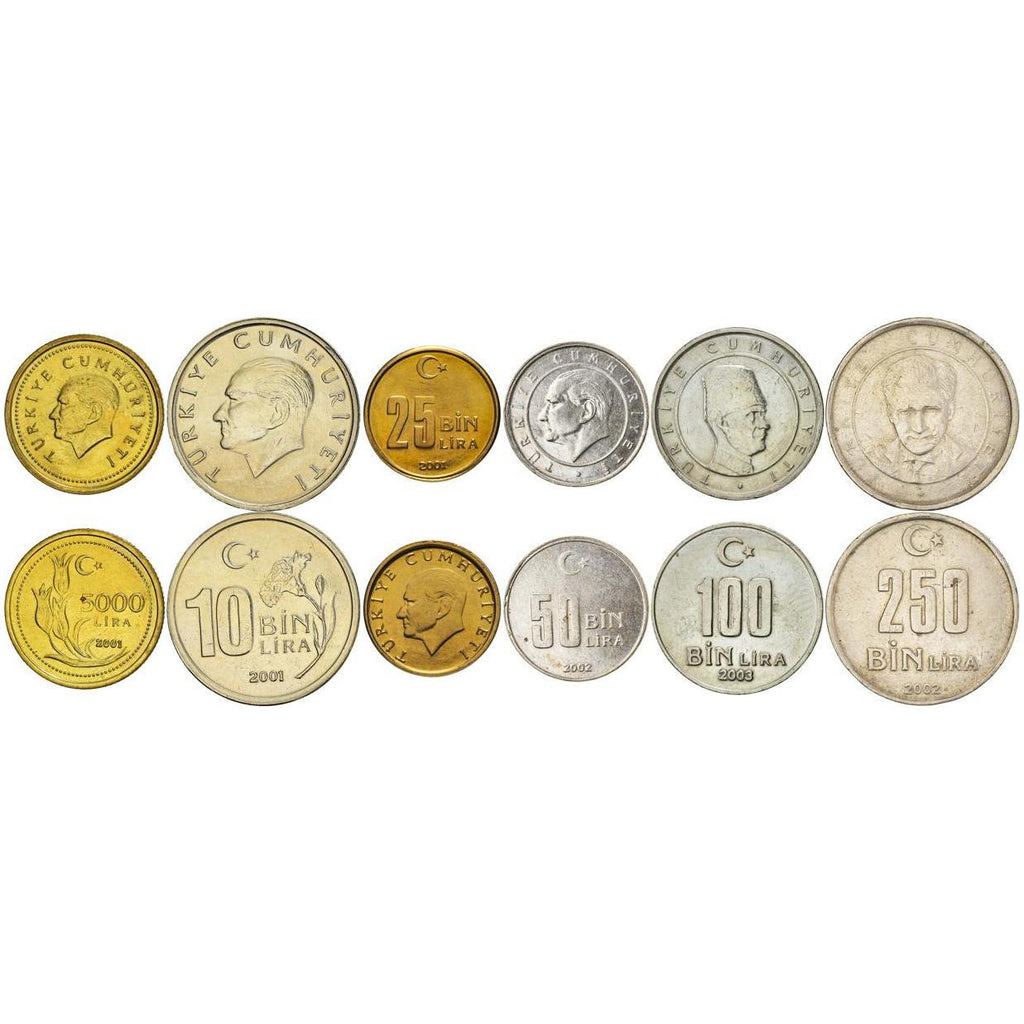 6-muntsset gemaakt in deze landen: Turkije (Republiek Türkiye), Türkiye Cumhuriyeti.