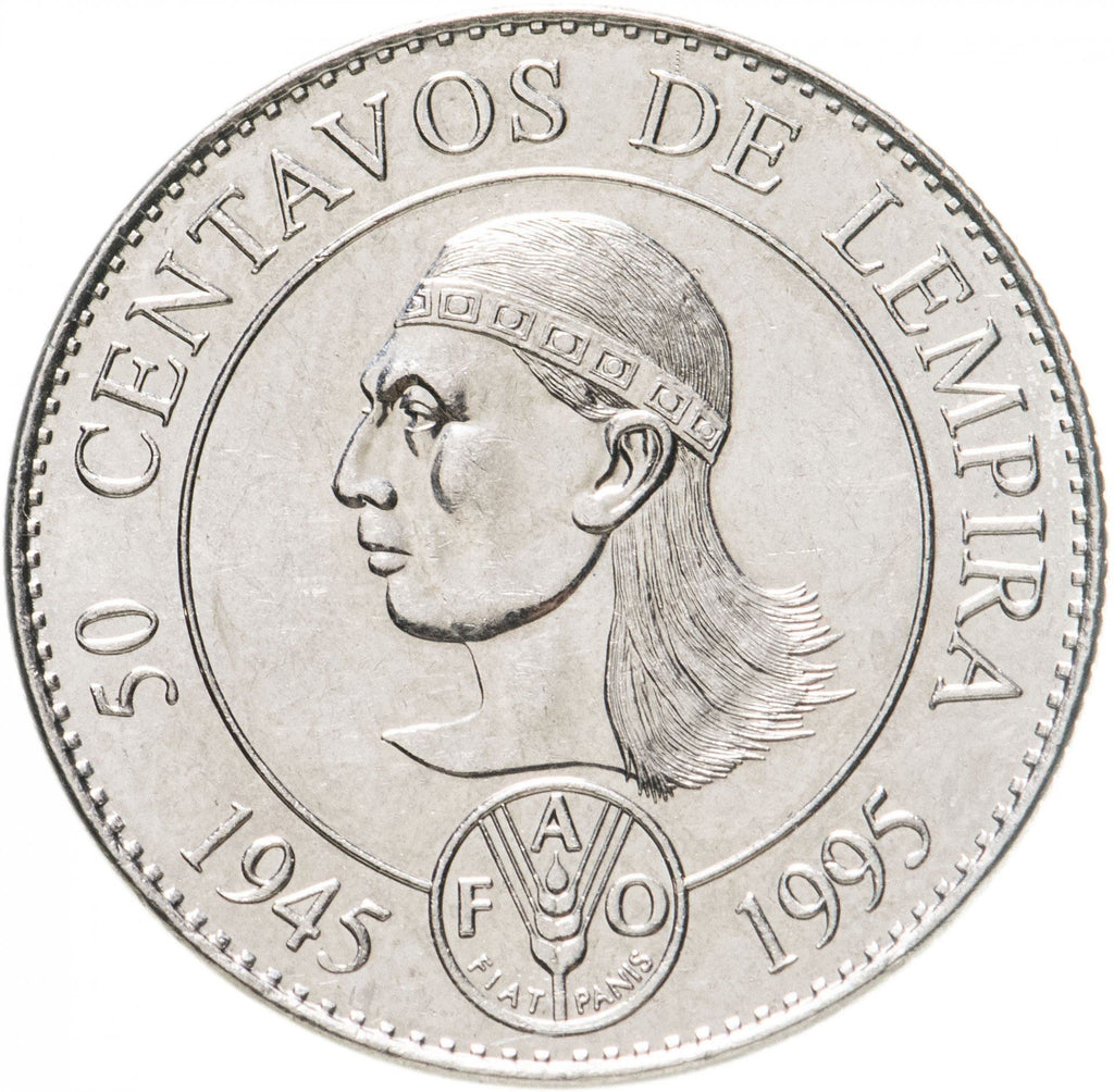 Reverse lettering: 50 CENTAVOS DE LEMPIRA1945 FAO 1995