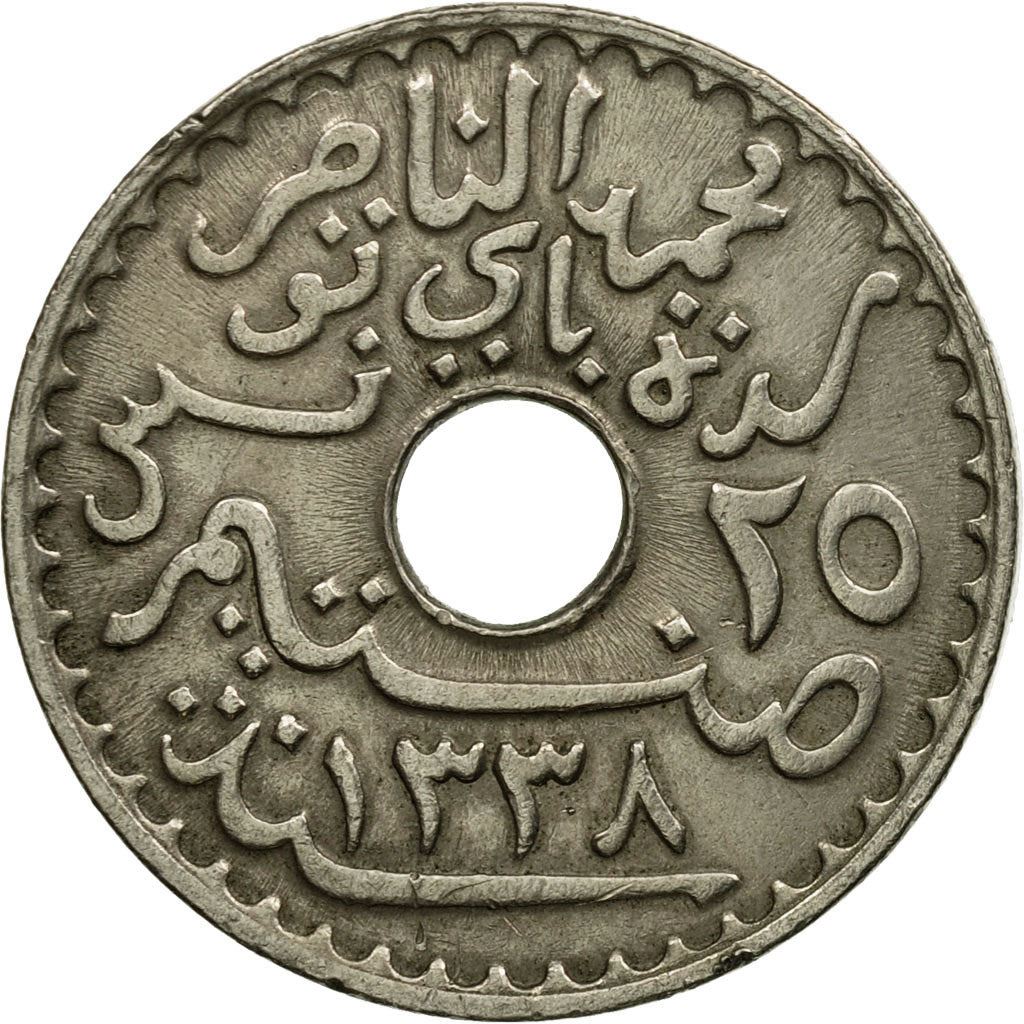 Obverse translation: Mohammed al-Nasir Regency of Tunis 25 Centimes year 1338