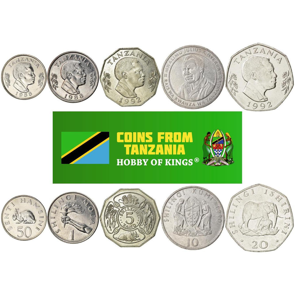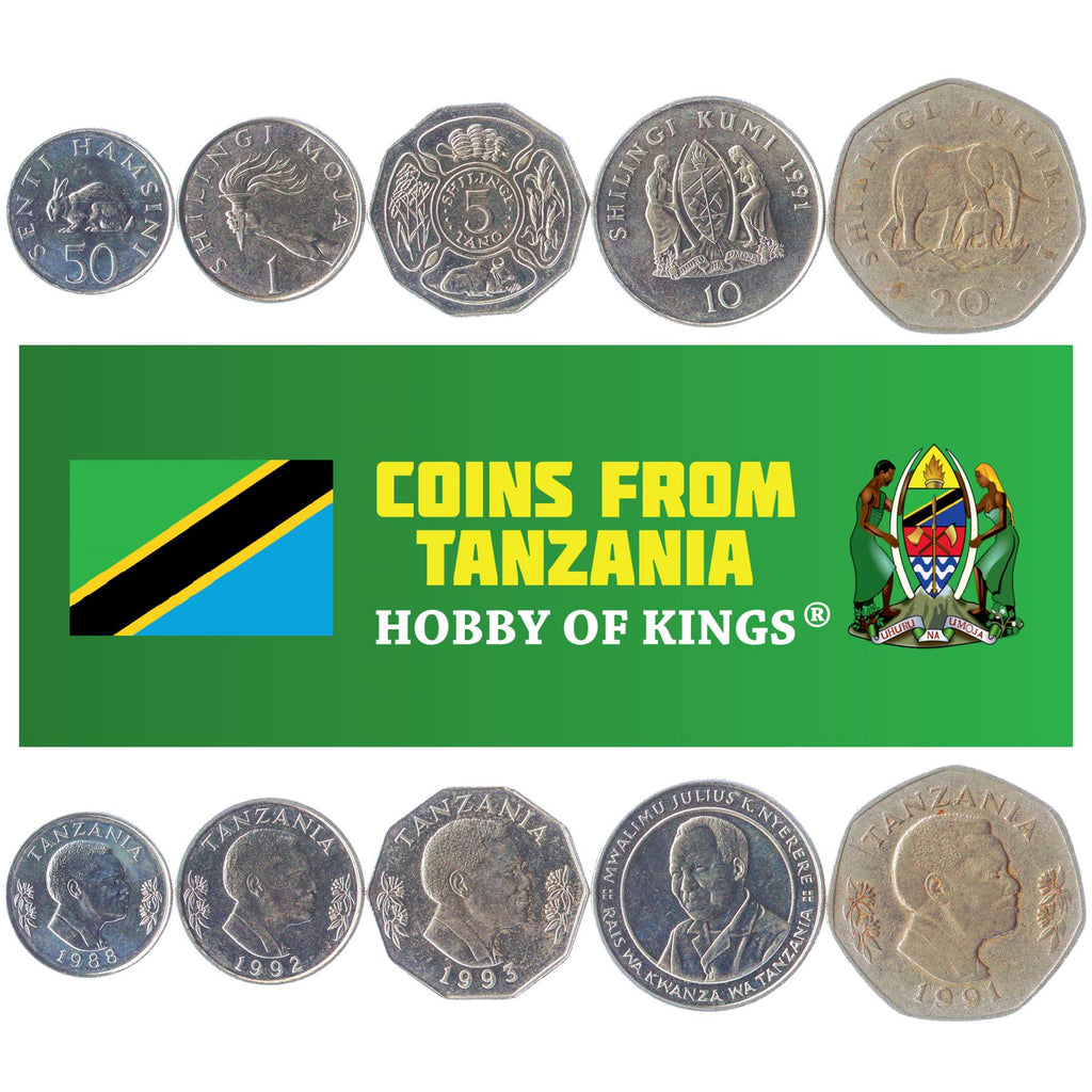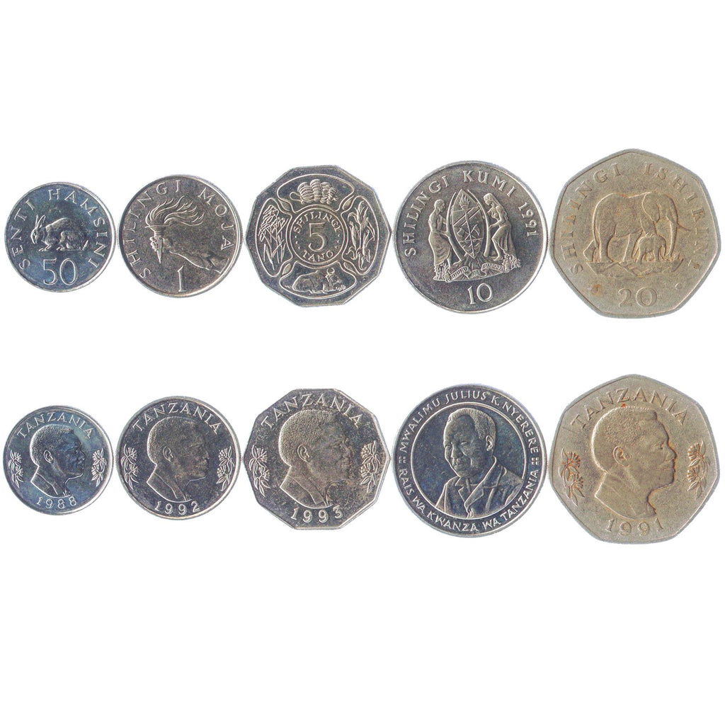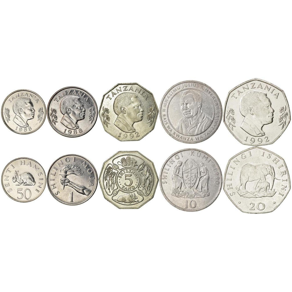 Conjunto de 5 moedas fabricadas nestes países: Tanzânia (Jamhuri ya Muungano wa), República Unida da Tanzânia.