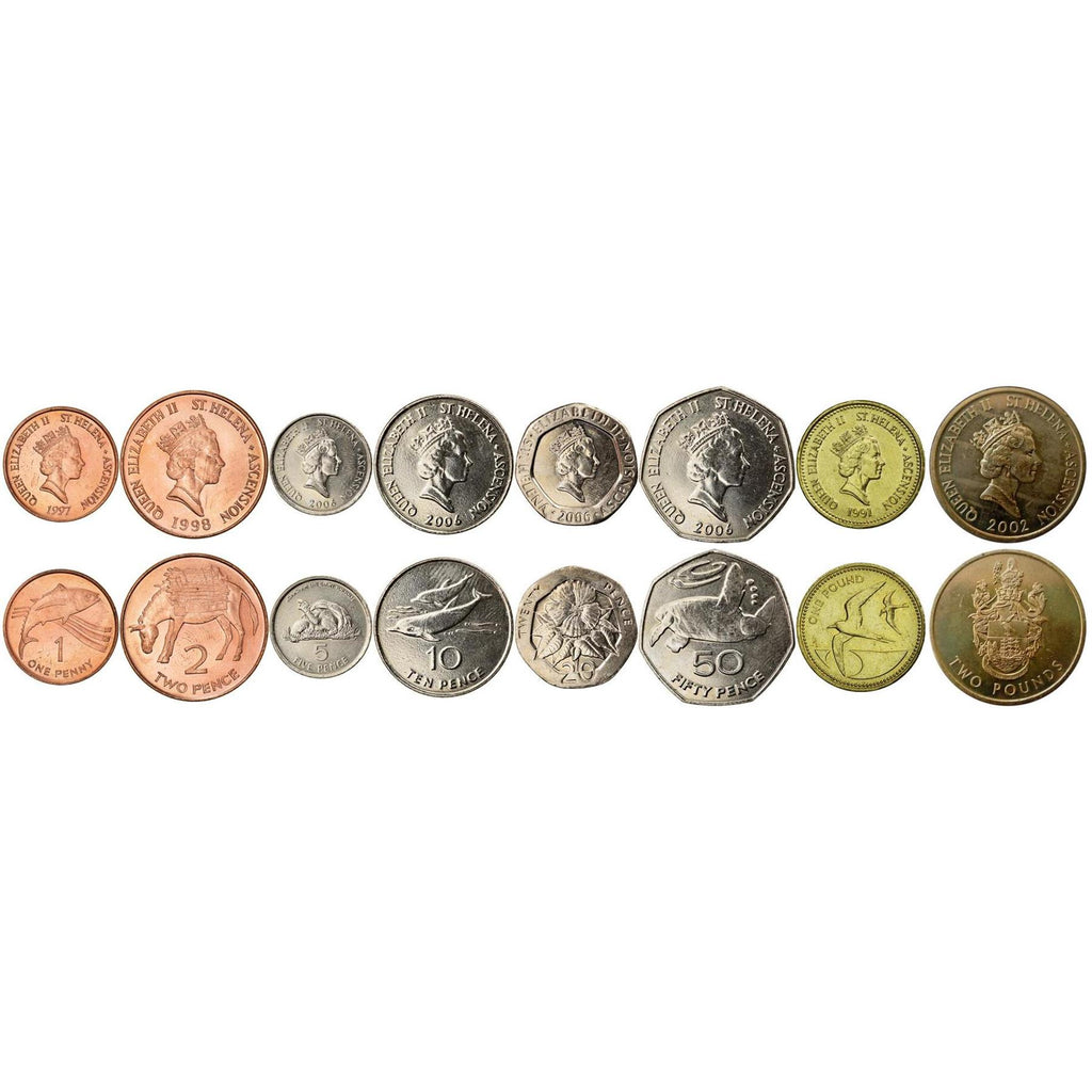 Conjunto de 8 moedas fabricadas nestes países: Santa Helena e Ascensão, Santa Helena e Ascensão (Territórios Britânicos Ultramarinos).