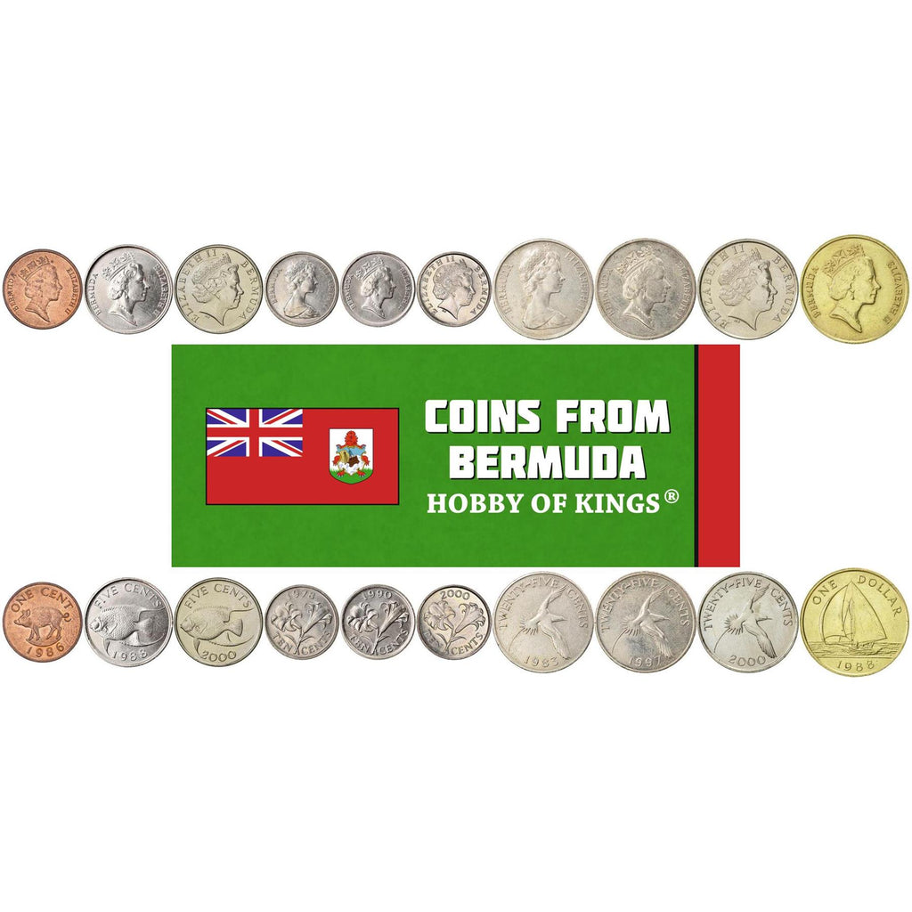 来自百慕大(百慕大群岛)的混合硬币。从以下时期随机挑选了不同的百慕大硬币:伊丽莎白二世女王 1970 - 2021()。