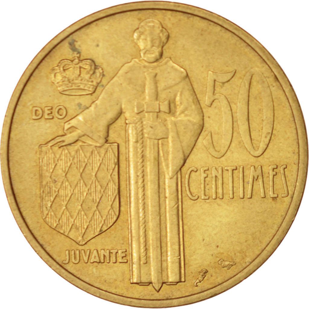 摩纳哥50分硬币(摩纳哥公国)。该硬币于1962年流通,将随机挑选。品相从良好到极佳不等。照片仅供广告用途。硬币可能有划痕、污渍或氧化损伤。