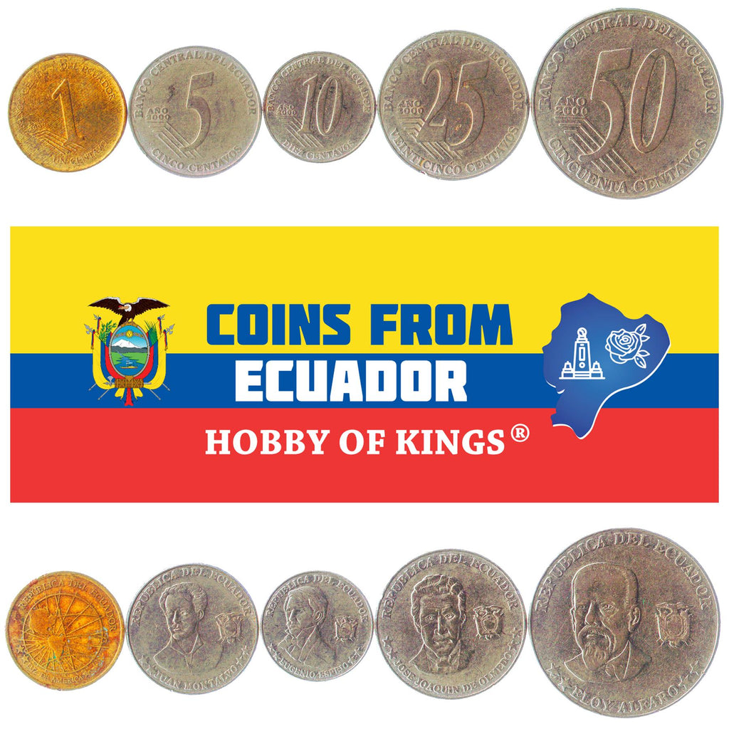 5 枚硬币套装,产自厄瓜多尔(厄瓜多尔共和国,República del Ecuador)。选自以下时期的厄瓜多尔硬币:厄瓜多尔共和国 2000 - 2023(2000 - 2003)。